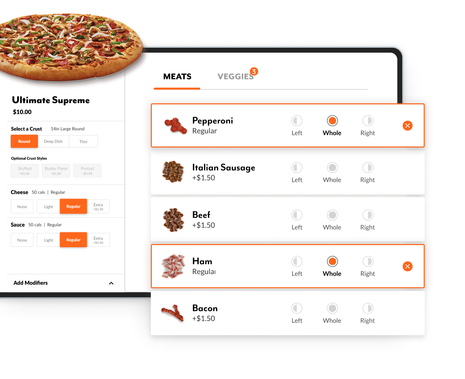 an item in the cart to bring up an item’s unique set of modifications.