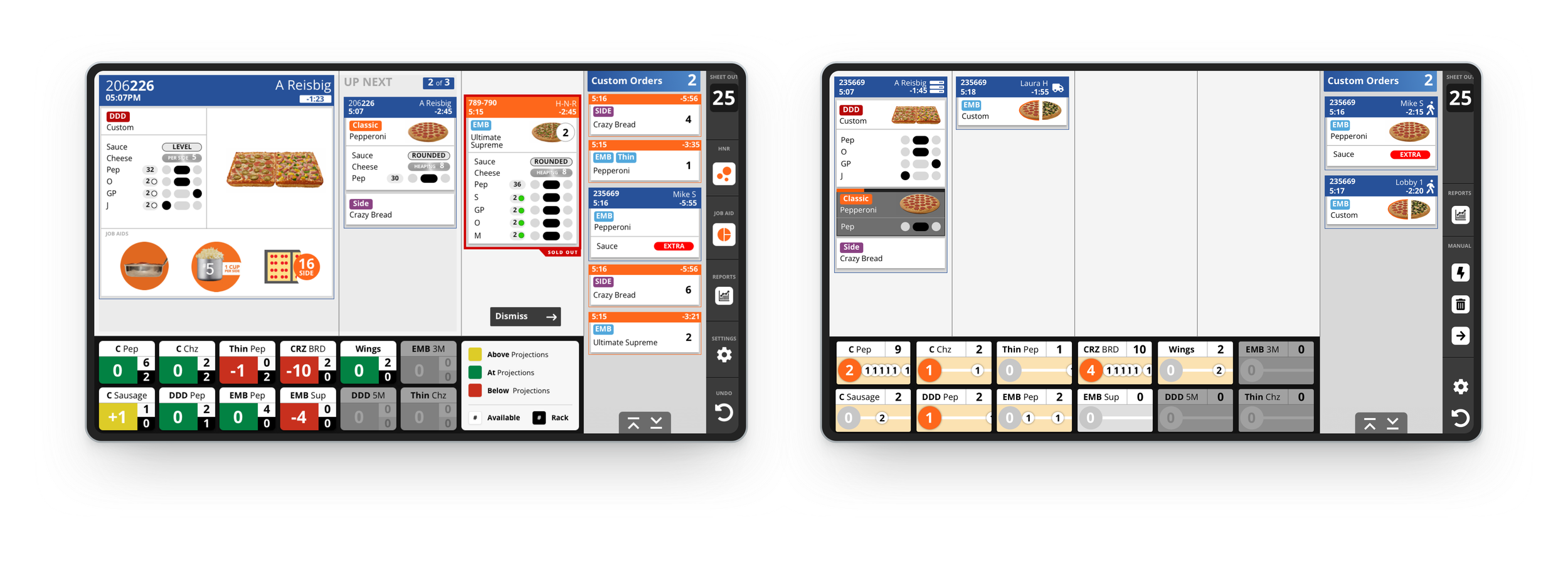 We observed employees at three different stores to understand how CaesarVision is being used today, its pain points and areas that can be improved upon. We saw how a Friday night rush can cause havoc on the make line if you aren’t prepared and how busy the lunch hours can be for some stores.